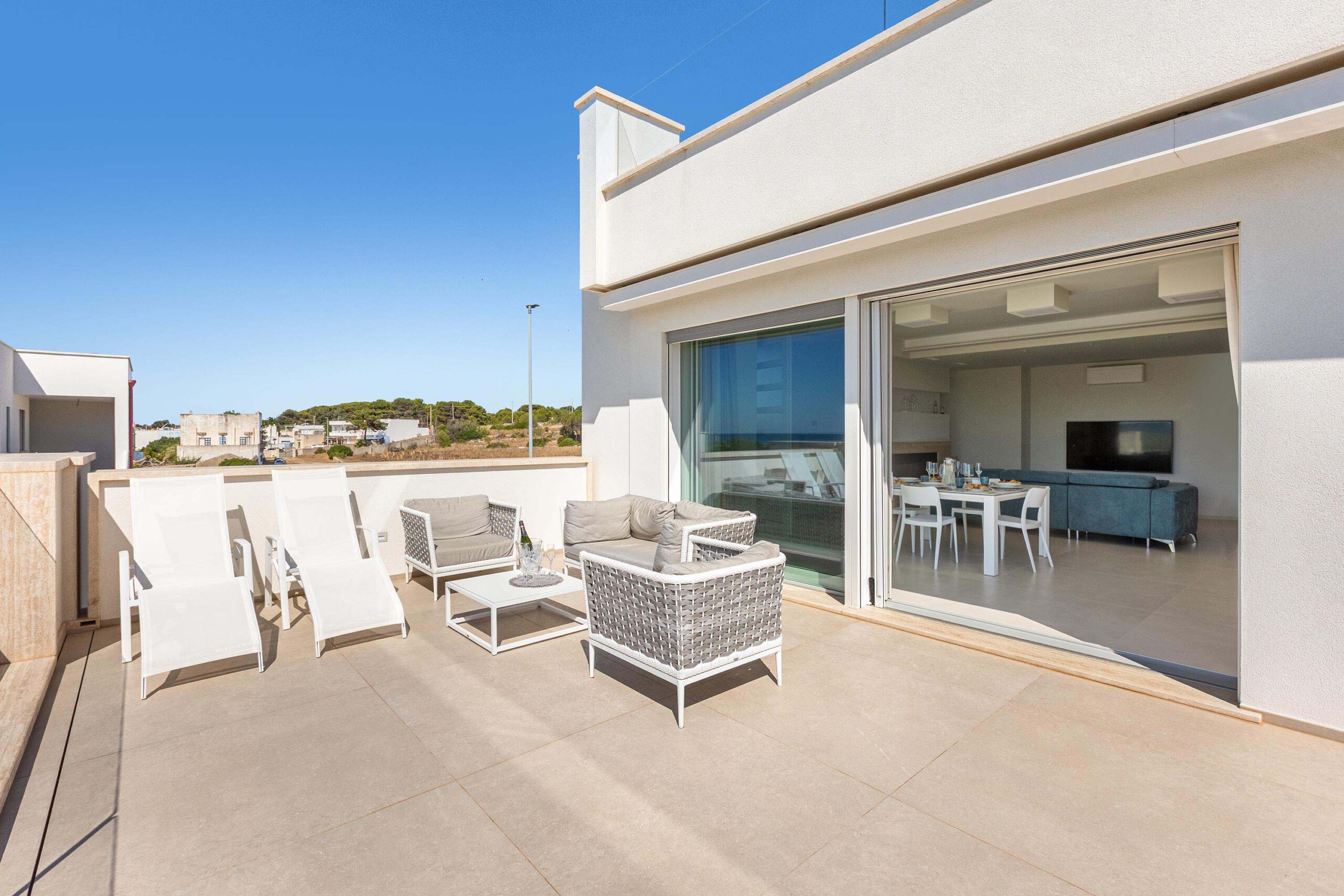 A pochi passi dalle acque cristalline di Pescoluse e della marina di Torre Vado, Villa Marlux si distingue per le sue linee essenziali, gli ambienti luminosi e la raffinata armonia tra materiali naturali e comfort moderni.